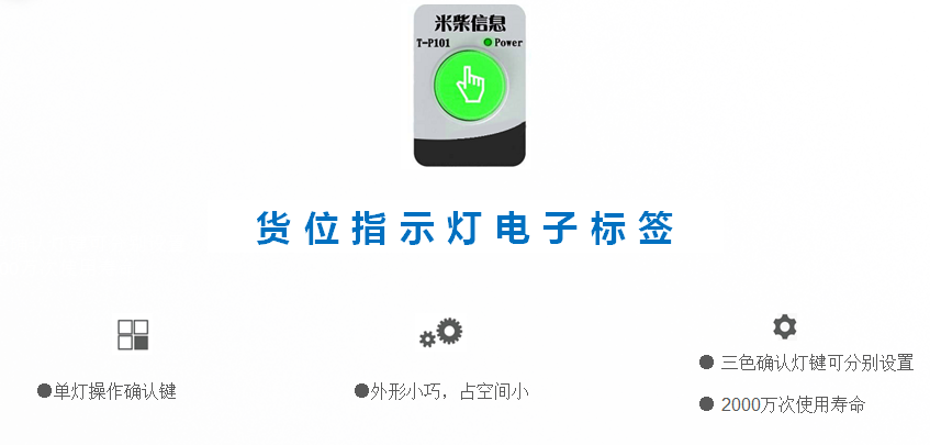 电子拣货标签设备主要用以通过指示灯引导操作人员,同时根据实际现场需要显示不同位数的操作信息。设备同时支持操作人员的按钮动作的检测。